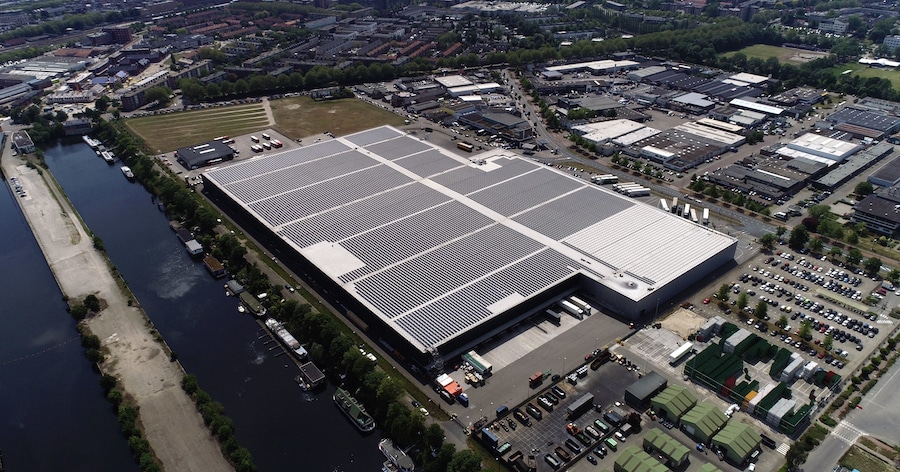 Dat gebeurde in samenwerking met SolarAccess; waarom deze partij? “Onder andere omdat ze al het eerste zonnepark er hadden neergelegd. We hadden al ervaring met ze. Ze leveren het hele systeem van het zonnepaneel. Ze ontwerpen het, ze bouwen en leggen het neer en onderhouden het. Het ligt op ons dak voor een langere periode, minimaal vijftien jaar. En wij betalen hen voor de stroom die van dat park afkomt. Daarom is het belangrijk dat je zeker weet dat je een goede partij gekozen hebt. Verder vinden in het gebouw allerlei logistieke werkzaamheden plaats. Al ons transport van “gereed product” brengen we vanuit het warehouse waar de zonnepanelen op staan, via Hartog en Bikker (ons logistiek dienstverlener) naar de markt. Hartog en Bikker werkt de hele dag in en rond het terrein, dus ook zij moeten goed weten wat er aan de hand is als er op het dak gebouwd wordt, zodat de logistieke operatie doorgaat. Dat is gelukkig goed gegaan.”